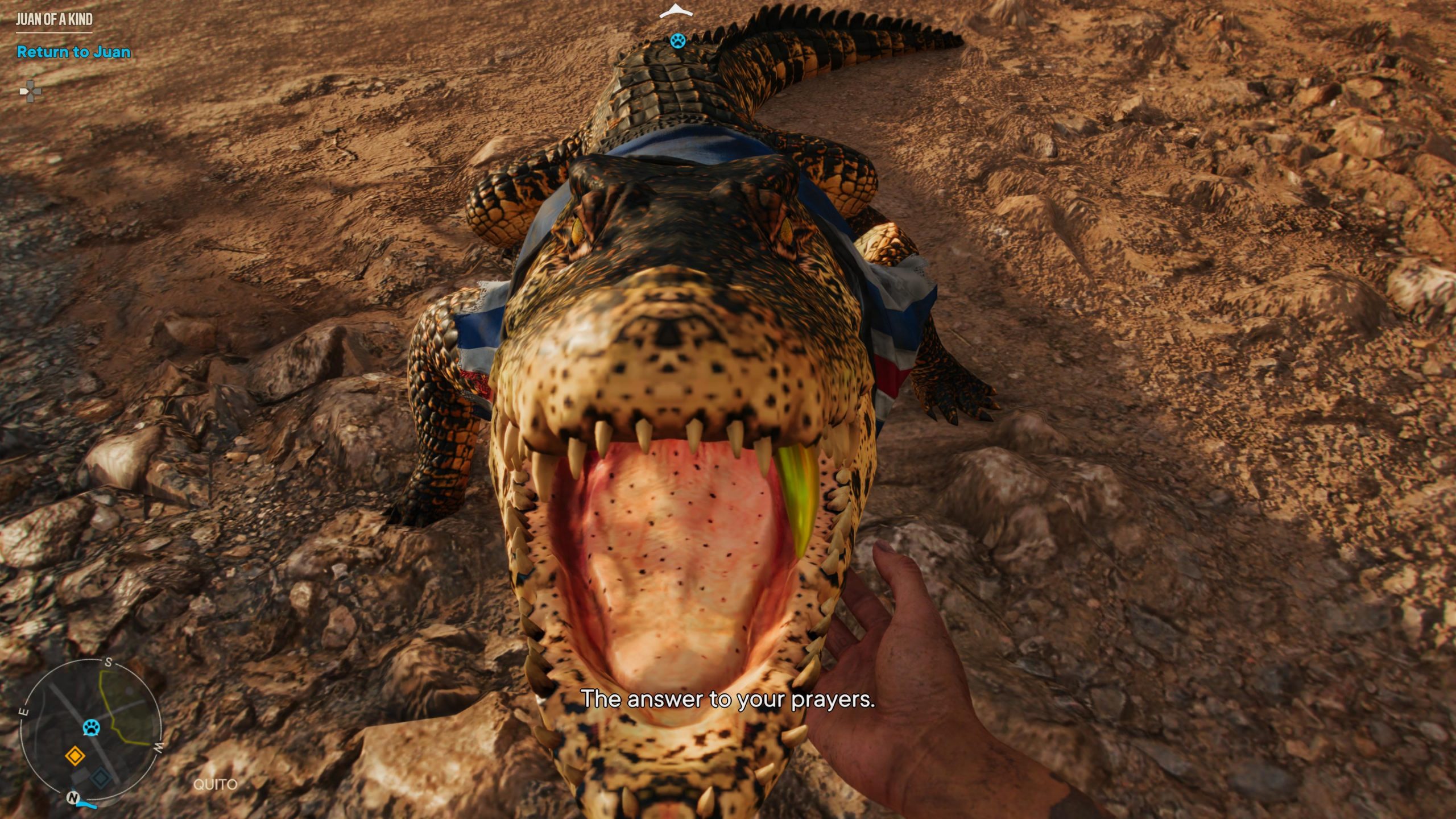 Pored ovoga imaćete i izbor vozila koja ćete otključavati i sami naoružavati, kao i pregršt raznih konja koje možete da jašete. Konji su baš agilni i brzi i trebalo mi je vremena da se naviknem jer sam skoro igrao Red Dead Redemption 2 gde se konji mnogo drugačije (da ne kažem realnije) ponašaju. I ovoga puta imate NPC kompanjone koji vas prate, ali su uglavnom životinje. Na početku se srećete sa predivnim krokodilom koga dugo nisam menjao – jer je krokodil pobogu.