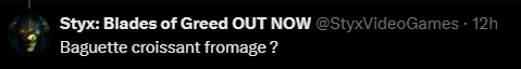 Tu nije bio kraj. Jedan igrač je upitao šta bi Styx uradio kada bi se suočio sa Samom Fišerom, koji se smatra jednim od najvećih junaka u stealth žanru. Kao odgovor, tim iz Cyanide-a je samo poručio da „Fišer ostaje u senci.“
