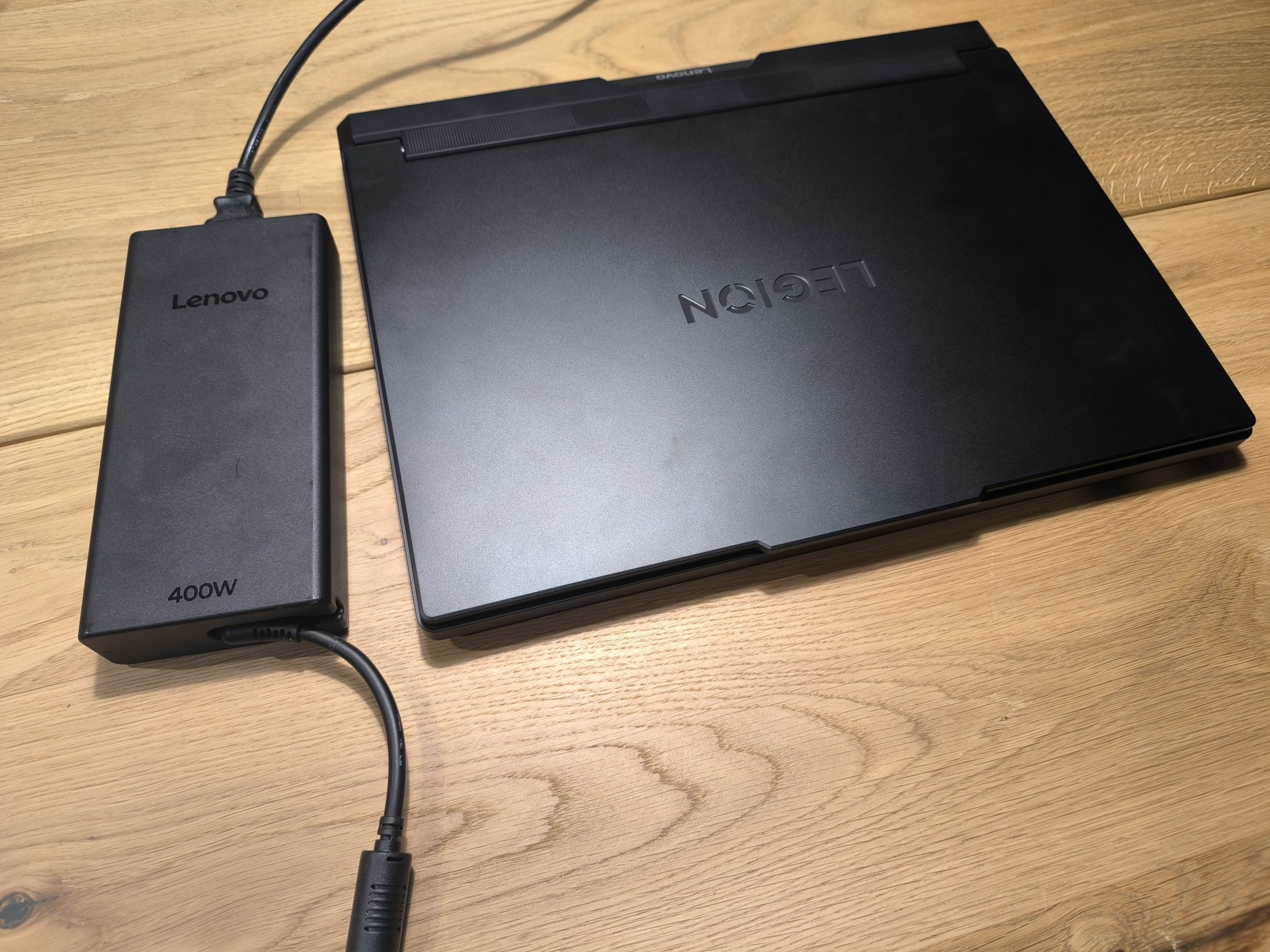 Ono što prvo odaje da se radi o nečemu čudnom jeste ispravljač koji je bukvalno veličine cigle, bez ikakvog preterivanja, s tim da je malo tanji, tj. otprilike duplo, ali težinom skoro da parira samom računaru. Međutim pravi šok dolazi kada pročitate oznaku na dnu napajanja: 400W! Do sada smo na testu imali gejming laptopove koji su imali napajanja u rangu od 200 pa do 270-280W, ali 400? Jasno je da je ovde u pitanju računar sa vrhunskim komponentama i vrhunskih performansi koji zahteva ogromnu količinu energije. Dobra opcija je ipak i što se ovaj računar može puniti i preko USB-C porta jačinom do 100W, što je sasvim u redu za neke kancelarijske poslove, ali ne očekujte da ćete moći da se igrate bez pravog napajanja.
